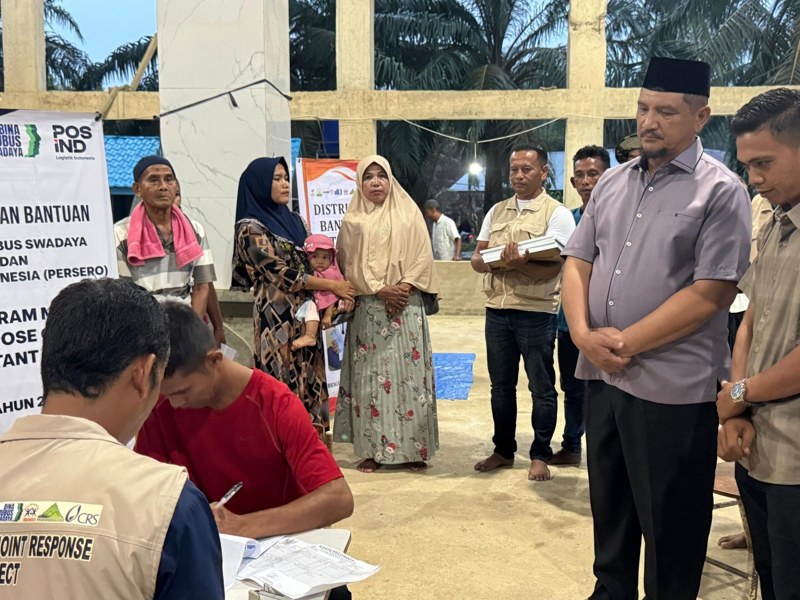 Bupati Aceh Tamiang secara resmi menyerahkan bantuan kemanusiaan yang bersumber dari Aceh Cyclone Response Project kepada warga terdampak bencana hidrometeorologi, Jumat (10/04/2026). Penyerahan dilakukan secara simbolis di Masjid Babut Taqwa Kampung Pematang Durian Kecamatan Sekerak.
