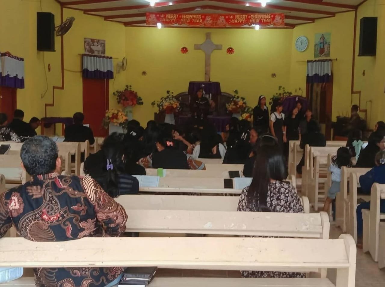 Ibadah berlangsung khidmat dengan dipimpin oleh St. Jonson Simanjuntak yang menyampaikan khotbah bertema “Sungguh Yesus adalah Anak Allah”, merujuk pada Injil Matius 27:45-56. Sekitar 50 jemaat mengikuti jalannya ibadah dengan tertib, sementara kendaraan jemaat didominasi sepeda motor.