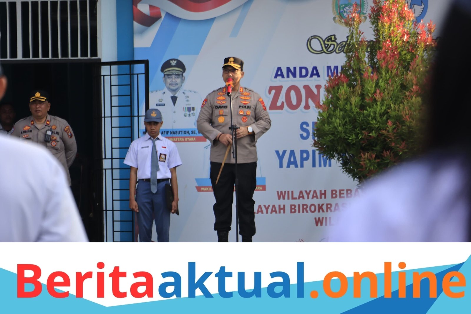 Upacara yang berlangsung khidmat tersebut dihadiri jajaran Pejabat Utama (PJU) Polres Langkat, di antaranya Kabag SDM Kompol Hasan, SH, M.H, Kasat Binmas Kompol M. Sebayang, SH, Kasat Lantas AKP M. Tommy Franata, S.T.K., S.I.K., M.H., M.T, KBO Sat Intelkam Iptu Widayat, Kasi Propam Iptu Ferry Irawan, SH, Kasi Humas AKP Jackson Situmorang, Kepala Sekolah Fresli Lumban Tobing, S.Pd, para guru, tenaga kependidikan, serta ratusan siswa-siswi.