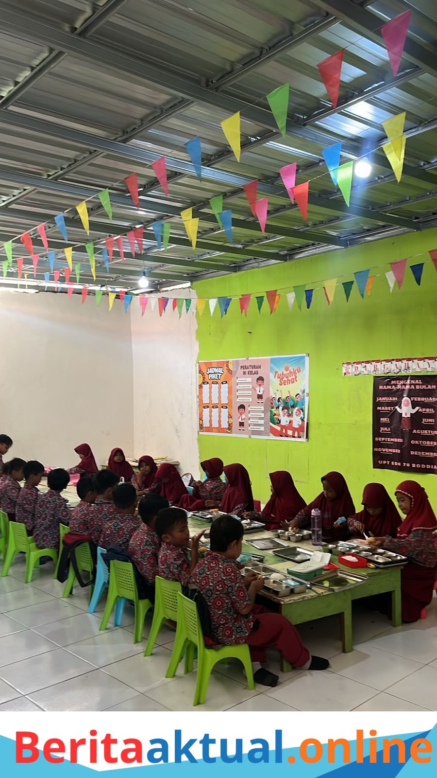 Sebelum menikmati hidangan, para siswa diajarkan untuk mencuci tangan terlebih dahulu sebagai bagian dari upaya menjaga kebersihan dan kesehatan. Setelah itu, mereka duduk bersama-sama di ruang kelas maupun di halaman sekolah yang telah disiapkan. Wajah-wajah mereka berseri-seri saat membuka bungkusan makanan yang berisi hidangan lezat dan bergizi.