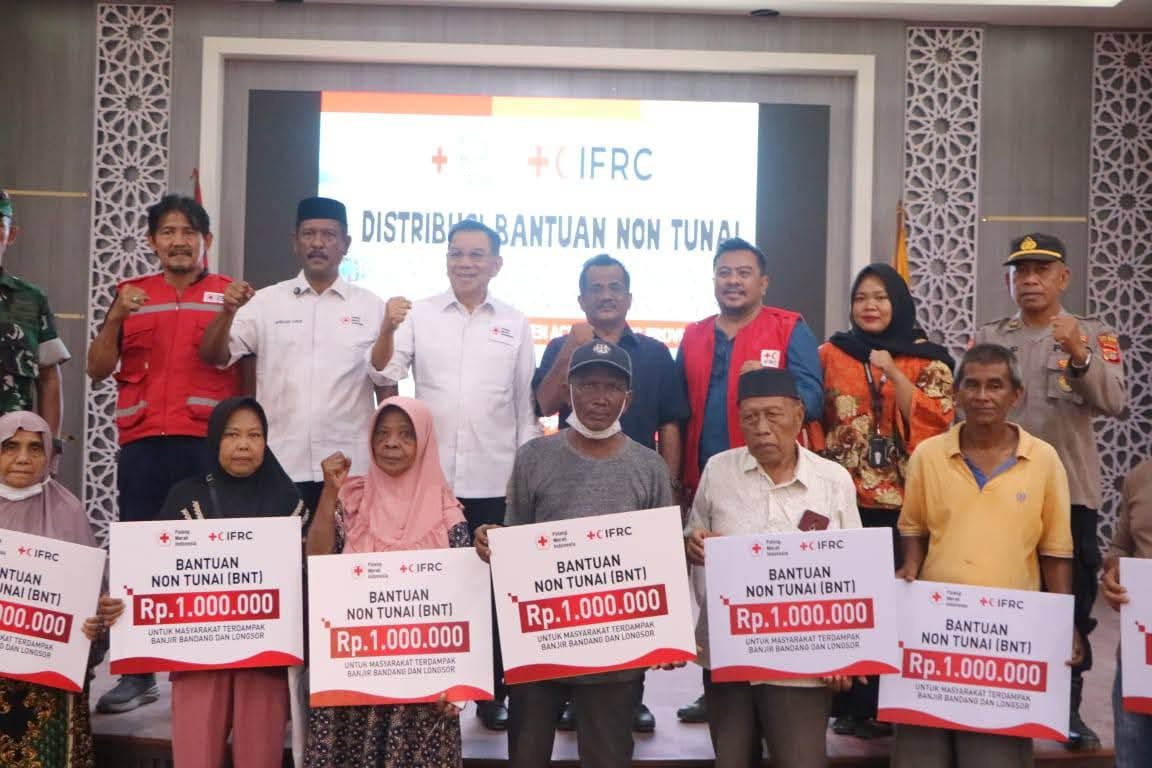 Sementara itu, Ketua PMI Provinsi Aceh, Murdani Yusuf, menjelaskan bahwa kegiatan tersebut merupakan penyerahan perdana bantuan non tunai melalui program PMI Pusat yang didukung para relawan serta staf PMI dari pusat hingga daerah.