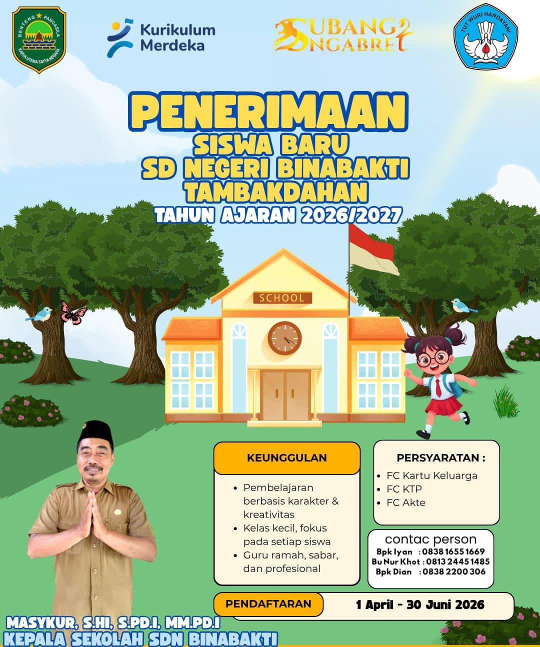 “Kami mengajak para orang tua untuk segera mendaftarkan anak-anaknya ke SDN Binabakti. Semua proses mengikuti aturan yang berlaku, dan kami siap memberikan pelayanan terbaik dalam dunia pendidikan,” ujar Masykur.